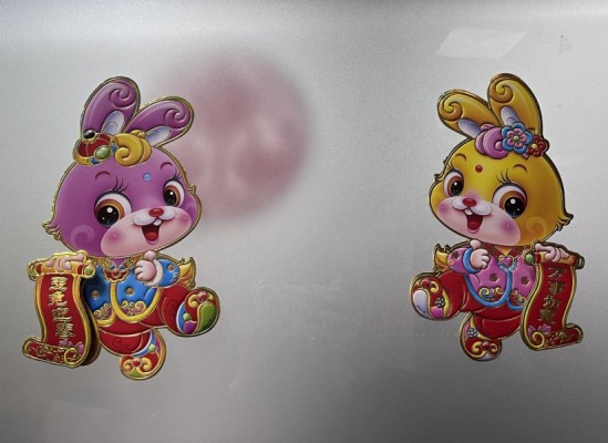 “卯兔迎新春,大家齊祝?!钡拇汗?jié)氛圍氣息越來越濃厚,公司處處都張貼了上了“?!?/span>字剪彩畫以及小兔子的迎新年畫。