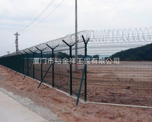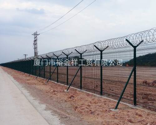 3、然后混凝土澆筑構(gòu)造梁,同時(shí)預(yù)埋上鐵絲網(wǎng)柱的鐵件,待構(gòu)造梁強(qiáng)度達(dá)到后,即可安裝上鐵絲圍欄了。