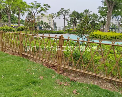 安裝完畢后的圍欄,看上去真的仿佛是竹籬笆一般。它的顏色和質(zhì)感與周?chē)参锓浅O嗨疲c公園的環(huán)境十分協(xié)調(diào)。