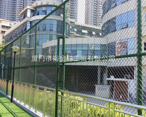 4、將勾花網(wǎng)與鋼筋棒組裝好的網(wǎng)片,由兩人拾起,與已經(jīng)組裝好的框架組裝,先將網(wǎng)片的兩邊與立柱60圓管上的邊耳穿插,并用螺絲固定,然后用同樣的方式,上下與48圓管用螺絲固定。就這樣,組裝完成了。