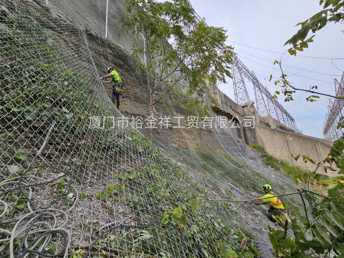 - 主動防護網(wǎng):采用鋼絲繩錨桿或支撐繩固定方式,將高強度鋼絲繩柔性網(wǎng)覆蓋在有潛在地質災害的坡面上,從而實現(xiàn)對坡面的加固和穩(wěn)定。