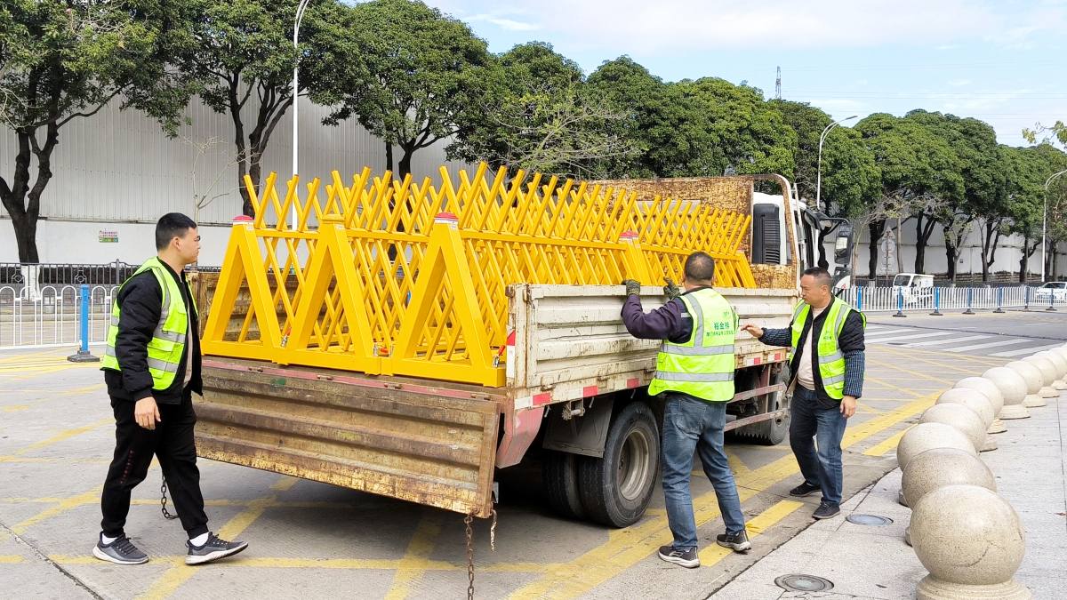 隨著車(chē)輛緩緩?fù)O?,大家齊心協(xié)力,將一格格堅(jiān)固的拒馬護(hù)欄小心翼翼地搬運(yùn)下來(lái)與校方或社區(qū)負(fù)責(zé)人進(jìn)行交接,并按照預(yù)先規(guī)劃的位置進(jìn)行安裝。