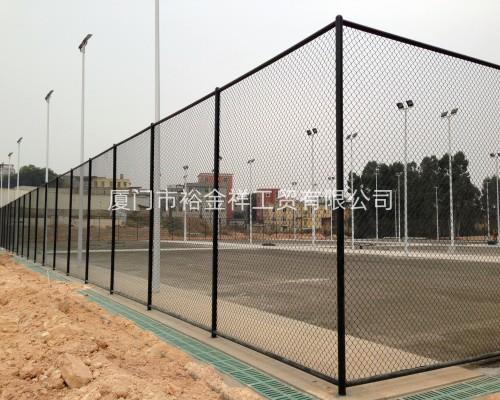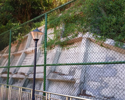 在水泥石屑層施工結(jié)束維護過程中,要將一切預埋件工程悉數(shù)裝置結(jié)束,施工根底第一層找平地墊時,要按圖紙的規(guī)劃要求,將預埋件悉數(shù)預埋好,網(wǎng)柱預埋件選用250×250×12mm鋼板,預埋深度為500mm,燈柱選用400×400×14mm鋼板,預埋深度為600mm長寬為500×500mm,預埋線管為PVC膠管,預埋深度為120mm,護欄網(wǎng)柱選用專用預埋件進行預埋。圍欄網(wǎng)裝置包含立桿、上下橫桿及圍網(wǎng),一切立桿、橫桿、圍欄及門都選用醇酸紅防銹底漆涂兩層以上,再選用醇酸野外磁漆涂兩道,顏色為綠色,而且圍網(wǎng)裝置包含扁鐵和一切零配固定件,立桿為:65鋼管,橫桿為50鋼管,圍網(wǎng):包膠圍網(wǎng),網(wǎng)距為45mm×45mm,外徑為3.9mm,內(nèi)徑為2.5mm高度為4.0m,顏色為綠色,門是50鋼管架,圍網(wǎng)類型與圍網(wǎng)共同。